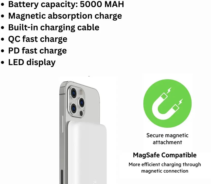 Lifelong Electronics 10000mAh MagSafe Wireless Fast Charging Power Bank for iPhone and All Qi Enabled Phones & Devices | USB Type C 22.5W PD Powerbank | Small Pocket Size | Strong Magnet & Extra Ring Lifelong Electronics 10000mAh MagSafe Wireless Fast Charging Power Bank for iPhone and All Qi Enabled Phones & Devices | USB Type C 22.5W PD Powerbank | Small Pocket Size | Strong Magnet & Extra Ring - White / 10000 mAh