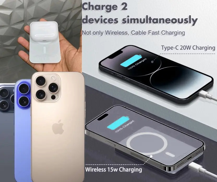 Portronics Luxcell MagClick 10k 10000 mAh 15W Magnetic Wireless Fast Charging Power Bank Premium Finish, 22.5 Wired Output Compatible with iPhone 12 & Above,Type C Smartphones, Tablets