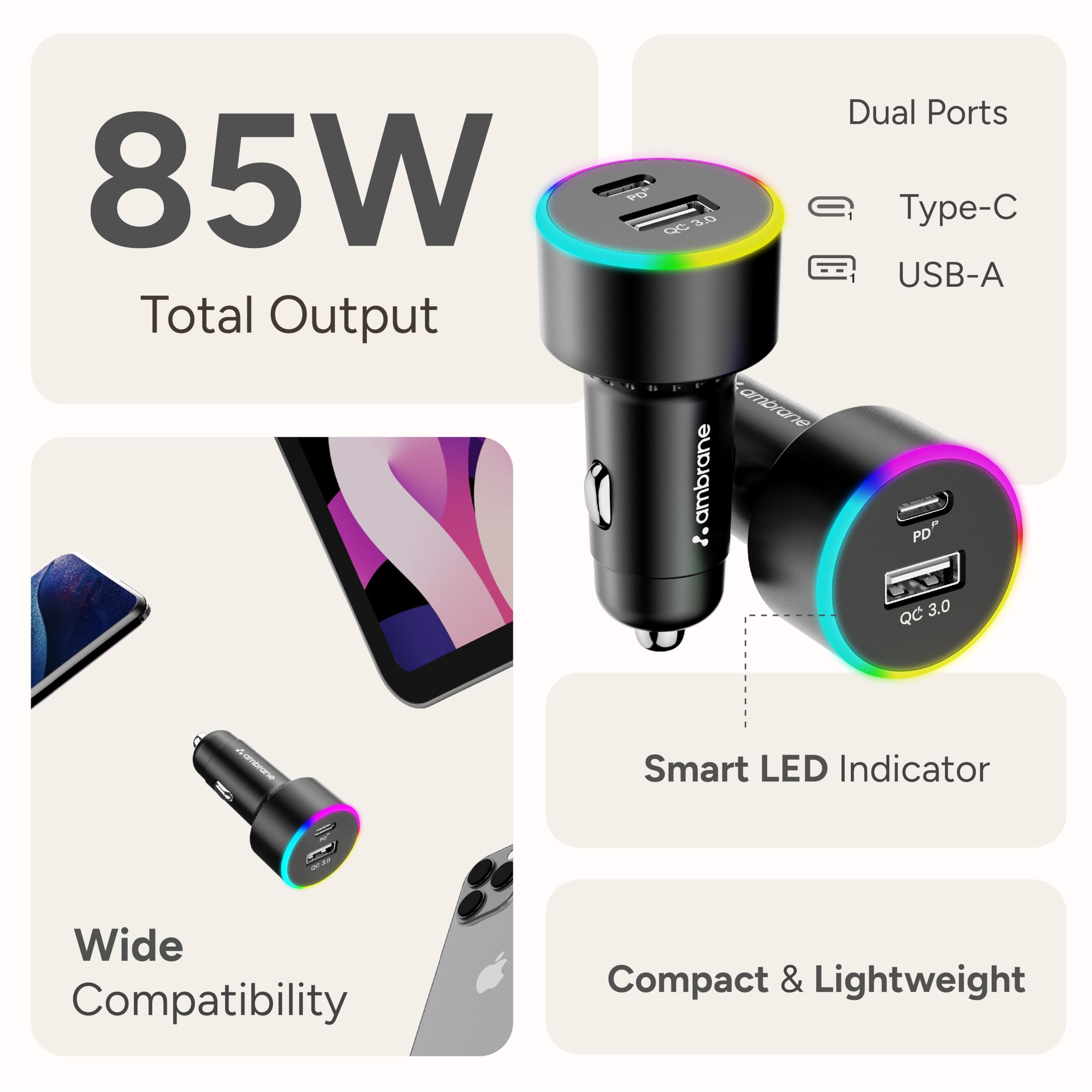 MOZEN by Amkette PowerPro 52W Car Charger Type C+USB A Dual Port Car Charger Socket, Fast Charging, Metallic shell with ABS Build, Safety Protections, Multi-Device Compatible - Mobiles, Tablets & More MOZEN by Amkette PowerPro 52W Car Charger Type C+USB A Dual Port Car Charger Socket, Fast Charging, Metallic shell with ABS Build, Safety Protections, Multi-Device Compatible - Mobiles, Tablets & More - Black
