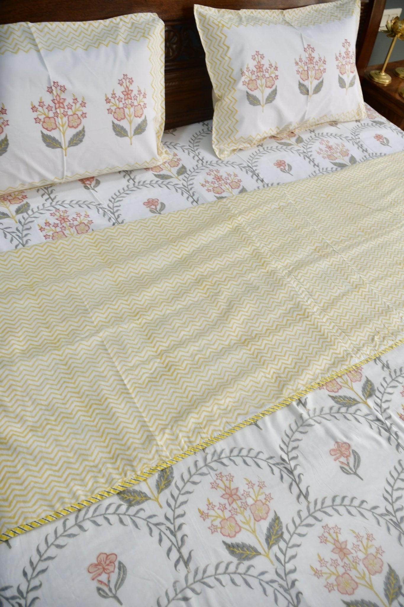 Basant Jaal Dohar Handblock Cotton Bedding set Single dohar (pair)+ superking Bedsheet