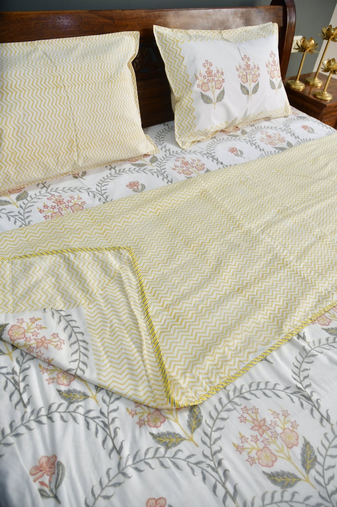 Basant Jaal Dohar Handblock Cotton Bedding set Super King (108*108 inches) bedsheet + King (90x108 inches) quilted bedcover