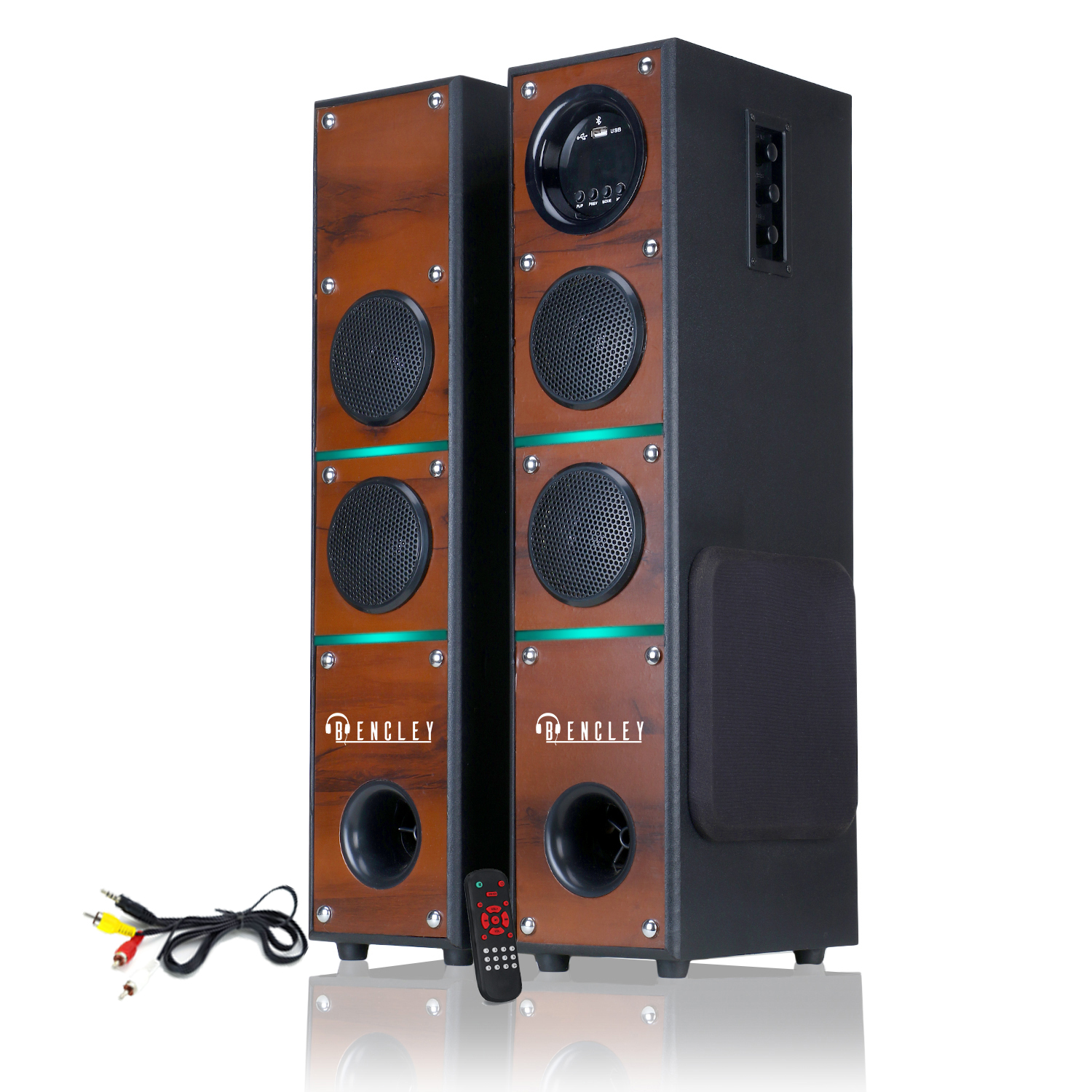 Experience the perfect sound with Double Tower Bluetooth Multimedia Tower Speaker System. This beautiful floor standing tower speaker with 5.25 inch woofer, delivers astonishing base and produces crisp and clear sound. Get the grand theatre feel at home by getting this mega Bluetooth Tower Speaker System from the house of Bencley. It comes with a 5.25 inch woofer boosts low end frequencies. This speaker system incorporates a newly developed in woofer for deep, stable bass. Utilizing a foamed mica-cellular diaphragm, it produces both powerful bass and the finer detail required for clear vocals and dialog in the mid-range. Wired or wireless connection - with Bluetooth 2 feet height, the tower speaker can pair with your device in seconds, your , , and any smart devices can work with this home audio speaker via Bluetooth for a comfortable wireless experience, or wired connections.