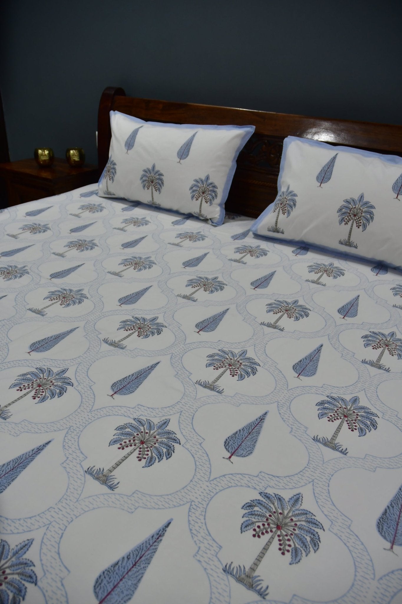 Blue Palm Hand Block Cotton Bedsheet King 90x108 inches