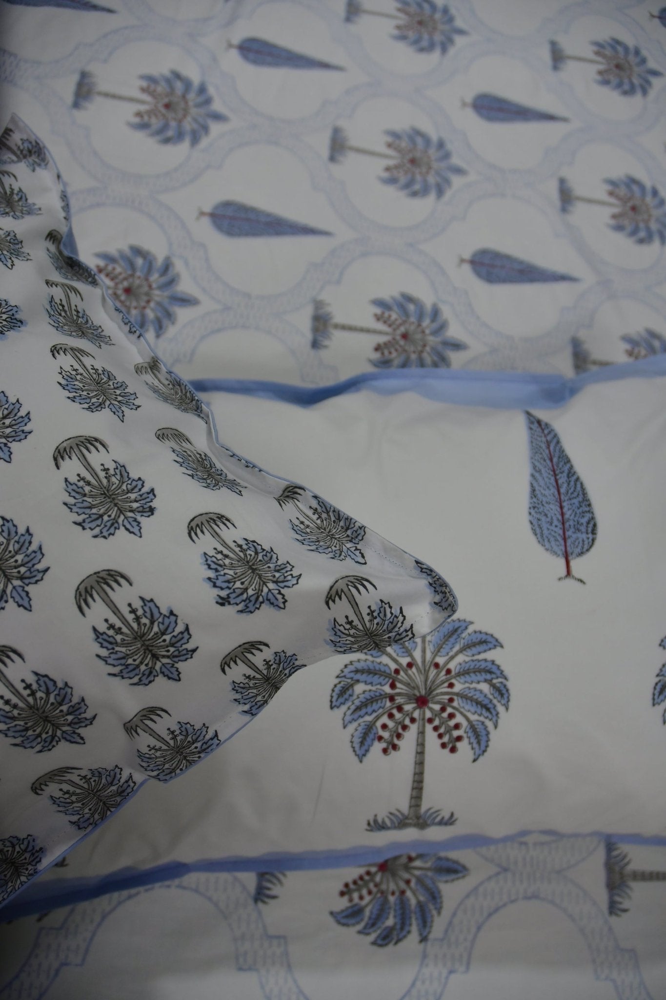 Blue Palm Hand Block Cotton Bedsheet Super King (108 x 108) inches bedsheet