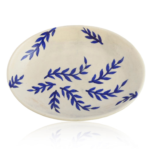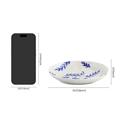 Blue Pottery Foliage Pattern Decorative Rice PlateWhite