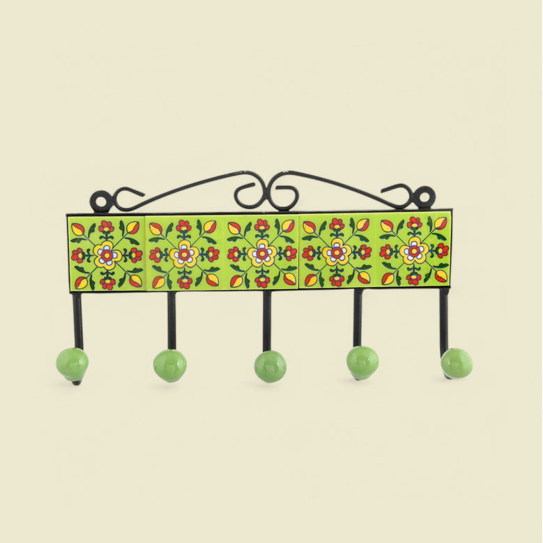 Blue Pottery Inspired Decorative Key HolderLime Green5 Hooks