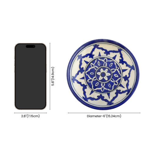 Ancient wisdom meets artistic brilliance in this enchanting mandala inspired pattern. Every curve, swirl, and intricate detail tells a story of masterful craftsmanship. This GI-tagged plate brings a regal touch to your space, whether displayed on wall or used for serving special delicacies with elegance.Material - Blue Pottery - A blend of quartz powder, ground glass, saji, katira gond, and multani mitti.