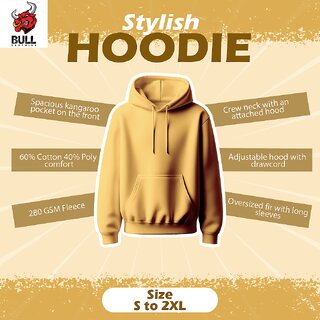 BULL CLOTHING Men's Bull Graphic Mustard Hoodie 60 Cotton,40 Polyester 280 GSM for Ultimate Comfort  Durability (L)