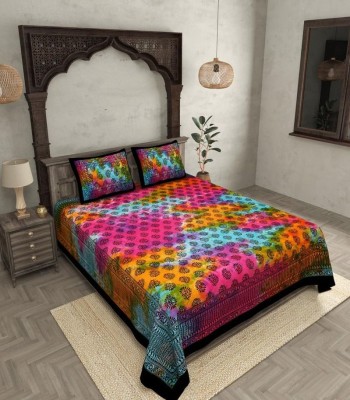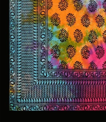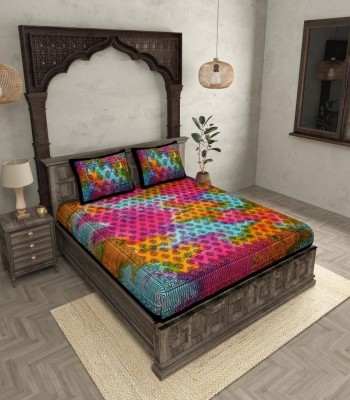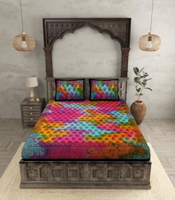 Add a splash of classic artistry to your bedroom with this Tie and Dye Kerry Pattern Block Print Double Bedsheet, made of 100% premium cotton. With a rich 240 thread count, this bedsheet provides ultimate softness, strength, and comfort for a peaceful night's sleep.Its size is 90" X 108", which is ideal for double beds, providing a clean and elegant appearance.The multicolored Kerry pattern block print, which has been made by the traditional tie-and-dye method, gives a distinct and attractive look to your room.Every design represents a soothing combination of bright colors, so it's perfect for people who prefer genuine, handmade-inspired bedding.With two coordinating pillow covers, the set provides an integrated and elegant look for your bed. Its easy-care characteristic, being washable in machines, fade resistant, and colorfast even when washed repeatedly makes it ideal to use daily.Material: 100% Cotton, 240 TC for giving a soft luxury feelDimension: Bedsheet - 90" X 108"Pattern: Classic Tie and Dye Kerry Pattern Block Print, MulticolorSet Contains: 1 Double Bedsheet and 2 Pillow CoversCare Instructions: Machine wash, tumble dry low, do not bleach Premium Comfort: High thread count for smooth texture and breathability.Unique Design: The colorful tie-and-dye Kerry pattern adds artistic flair to your bedroom decor.Low Maintenance: Fade-resistant colors and easy-to-clean fabric for effortless care.Complete Set: Matching pillow covers for a refined and cohesive appearance. Bring the style of traditional design and contemporary flair into your residence with this 240 TC Tie and Dye KerryPattern Double Bedsheet Set. Ideal for gifting or to revitalize your own domain, it's created to inject a dash of cultural refinement to your dcor.