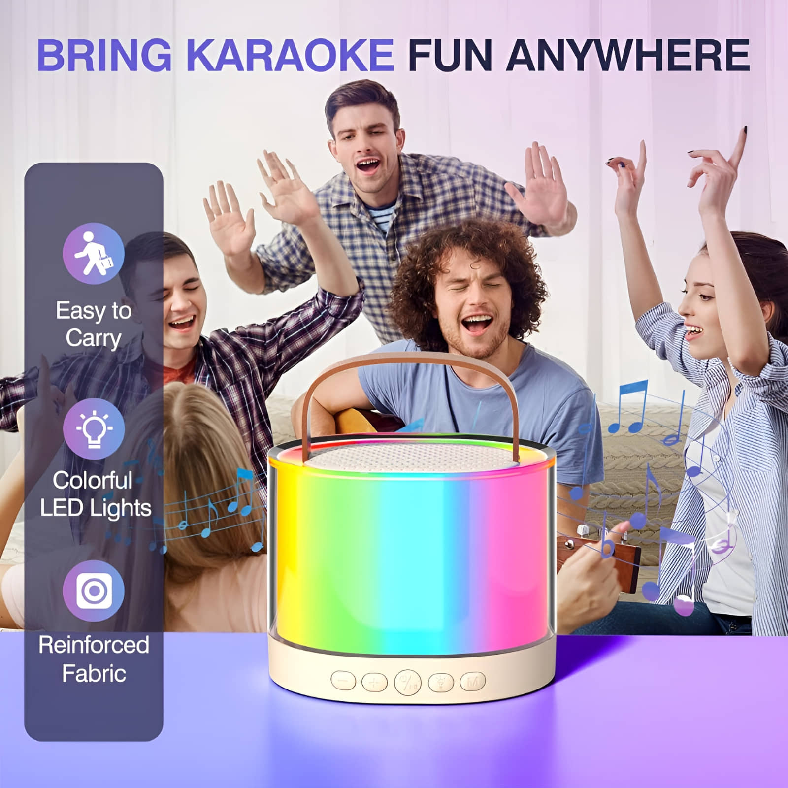 Portronics Apollo One 20W Bluetooth Speaker, Wireless karaoke Mic, Easy Handle Grab, Type C Fast Charging White