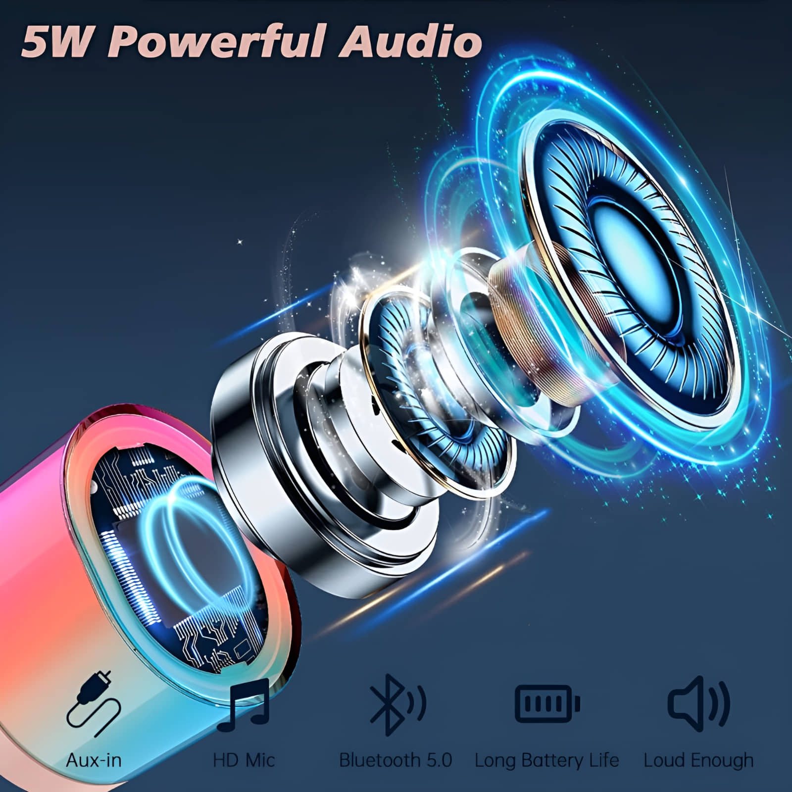 Portronics Talk Six 10W Bluetooth Speaker, Upto 4 Hours Playtime, 360 Degree LED Light, Bluetooth Version 5.3