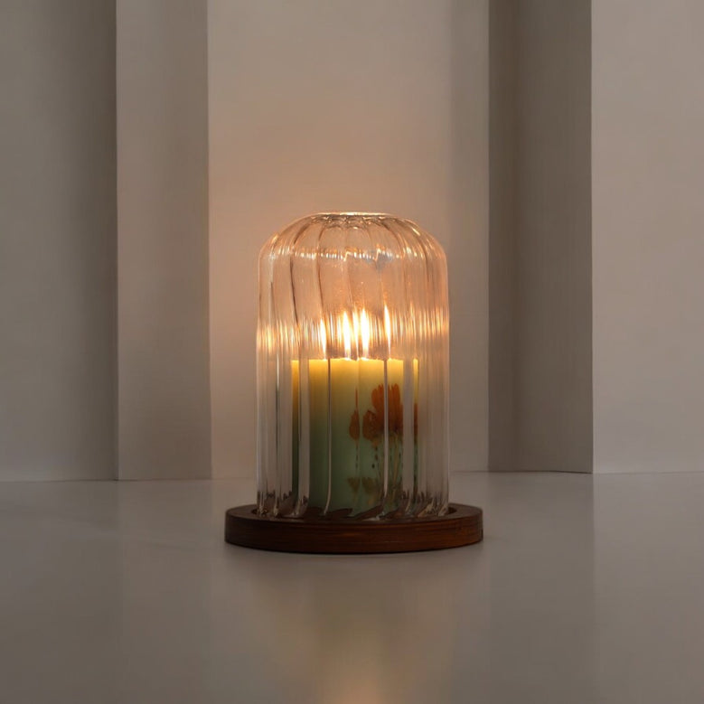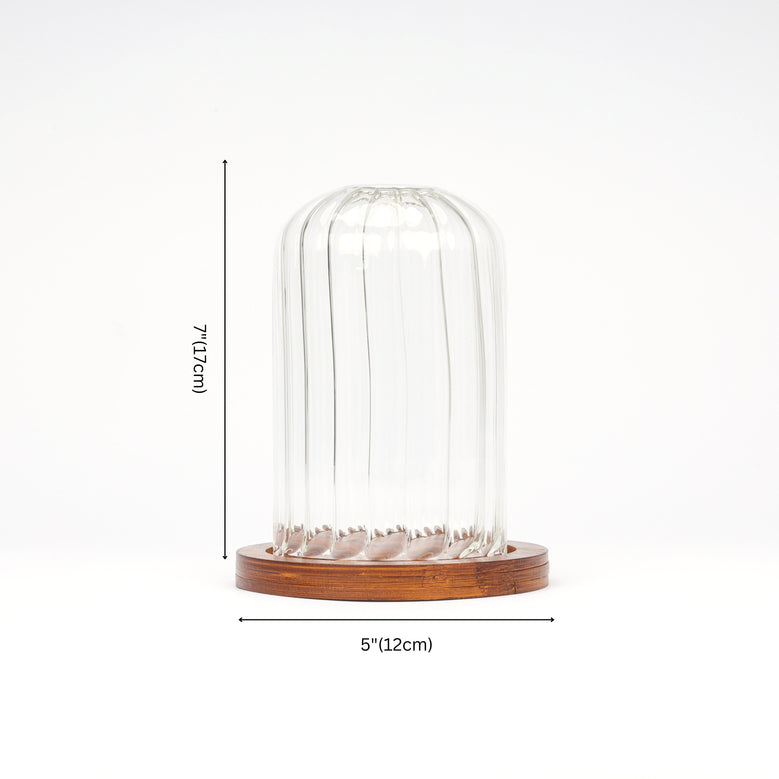 Let your creativity shine with this elegant glass dome and wooden base. Whether you use it to highlight flickering candles, display vibrant plants, or showcase treasured keepsakes, it adds warmth and elegance to any space. The clear glass highlights its contents beautifully, while the rustic wooden base adds a charming, lasting touch.Glass