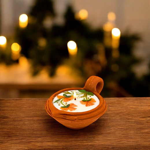 Step into the world of fragrances with this Aladin Diya, where sustainably crafted soy wax, adorned with natural dried flowers, is poured into a terracotta container. Choose from soothing aromas of rose, lavender, lotus, lemongrass, jasmine, sandalwood, and vanilla, creating a serene haven for relaxation and self-care moments., Material - Soy Wax and Natural Dried Flower