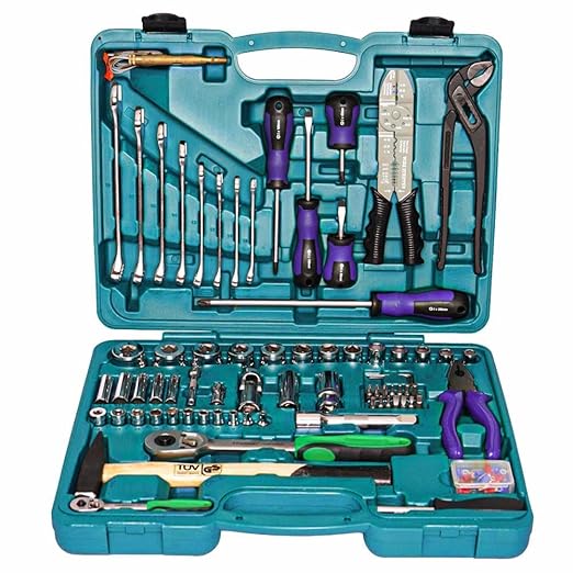 Eastman 1/2 Inch & 1/4 Inch Sq. Drive 100 Pcs Socket & Bit Set, Chrome Vanadium Steel Knurled Sockets Tool Kit, Bmc Pack Ratchet Handle Spinner Handle(E-2302)