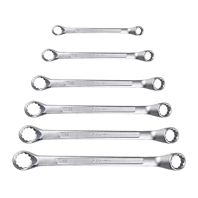 Eastman Bi-Hexagonal Ring Spanners - Shallow Offset - Crv Set Of 6 Pcs, Kit-07-60SD,Automotive Spanner Kit Chrome Vanadium Steel, Chrome Plated Ideal For Mechanical Work and Automotive Work (E-2007)