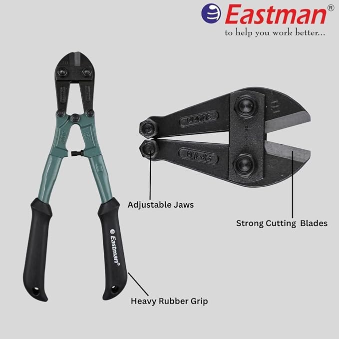 Introducing Eastman premium Bolt Cutters, crafted from durable Chrome Molybdenum Steel for exceptional strength and longevity. Featuring adjustable jaws and a heavy rubber grip for comfort, these bolt cutters are designed to tackle tough cutting tasks with ease. The double tubular handle ensures strong cutting force, while the cutting jaws can handle 8.8 nuts and bolts. With a compact size of 8 inches (200mm) and a cutting diameter of 2.5mm, these bolt cutters are a versatile and reliable addition to your toolkit.