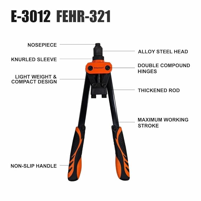 Eastman Hand Riveters 321 mm Pop Rivet Gun Fast Hitting Professional Chrome Handled Riveting Tool for Metal Furniture Automotive Home Workshop (E-3012)
