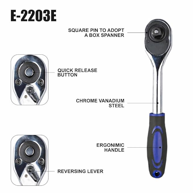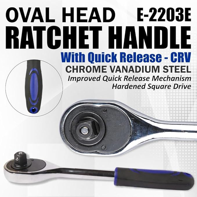 Eastman Oval Head Ratchet Handle - With Quick Release, Drive Size-1/2 (12.7), Length 250 Mm, Chrome Vanadium Steel, Hardened Square Drive Unique Design Grip (E-2203E)