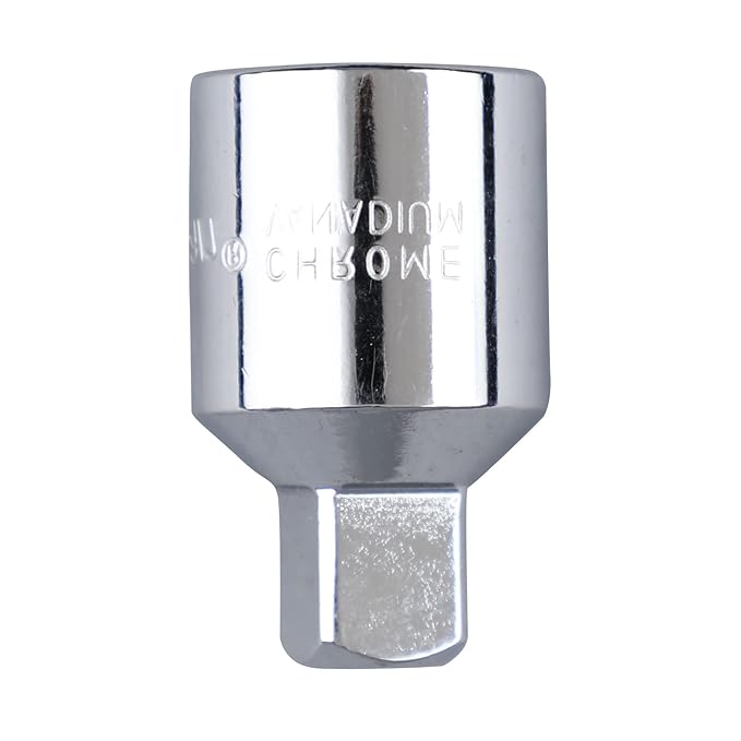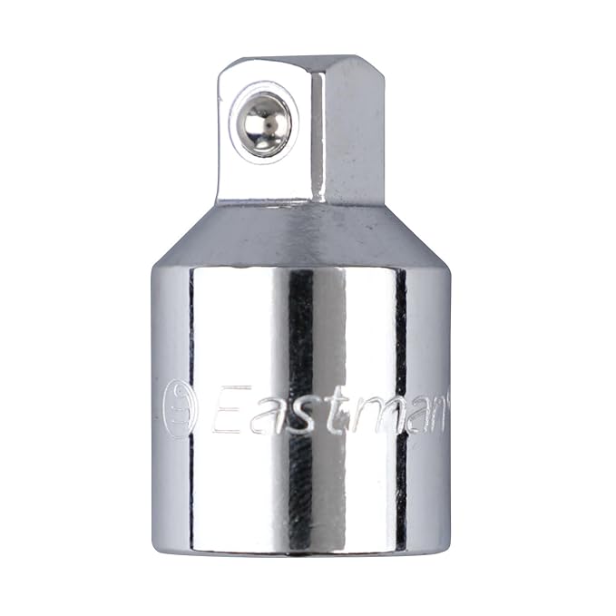 The Eastman Socket Adapter is a premium tool designed to meet the demands of both professional mechanics and DIY enthusiasts. Crafted from high-quality Chrome Vanadium Steel, this adapter ensures exceptional durability and long-lasting performance. Both ends are hardened to provide enhanced strength and resistance to wear, making it a reliable choice for any toolbox. This versatile adapter features a 3/8" (9.5mm) Male end and a 1/2" (12.7mm) Female end, offering compatibility with a wide range of sockets and tools. The chrome finish not only gives it a sleek look but also provides excellent resistance to rust and corrosion, ensuring it stays in top condition even after prolonged use. Designed for ease of use, the Eastman Brand Socket Adapter boasts a smooth and precise fit that guarantees quick and secure connections. Whether you're working on automotive repairs, home improvement projects, or any task that requires a dependable socket adapter, this tool is up to the challenge. Trust in the Eastman Brand for reliable, high-quality tools that deliver outstanding performance every time.