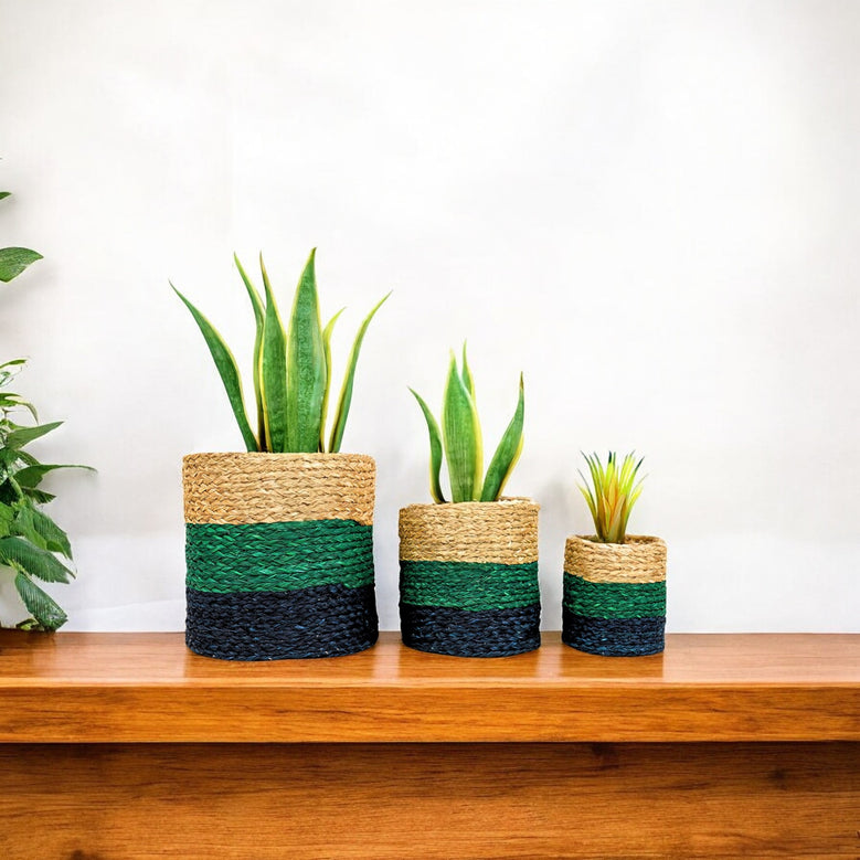 Eco-friendly Handwoven Sabai Grass Planters Set of 3