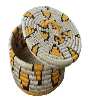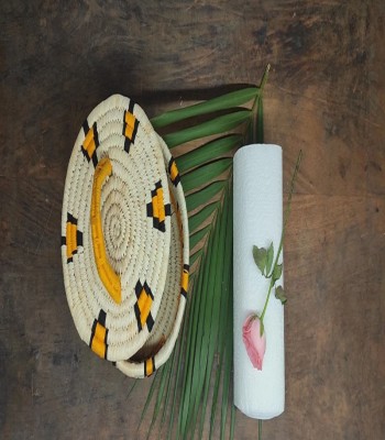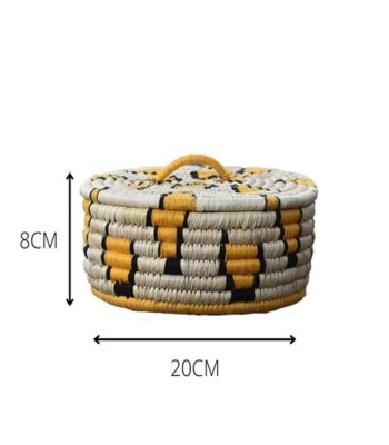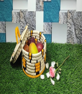 MVB Eco Grass Desi Basket Where Tradition Meets Modern Utility* Blend of Heritage & Contemporary Charm The MVB Eco Grass Desi Basket combines a dash of Indian heritage with a contemporary touch, showcasing an earthy, handwoven look created from eco-friendly natural grass.* Exquisite Geometric Pattern This round basket is tastefully decorated with a beige, gray, and yellow woven pattern, making it both functional and decorative.* Versatile & Roomy Whether storing essentials or as home decor, the basket is ideal for tidying up household necessities while bringing rustic appeal to your home.* Universal Lid for Safe Storage Includes a perfectly matched lid, keeping your items securely hidden, marrying practicality with sophistication.* Sustainably Handmade Made with natural materials and eco-friendly processes, this basket is designed to last while protecting the planet.