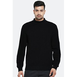 Fashlook Solid High Neck Wool Blend Casual Black Full Sleeve T-Shirt For Mens