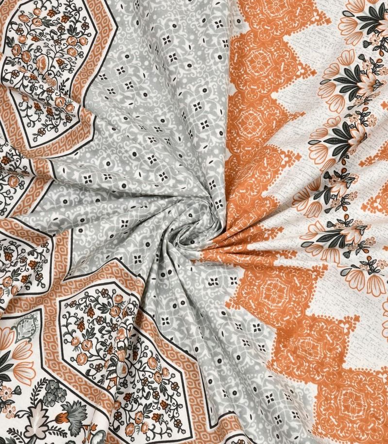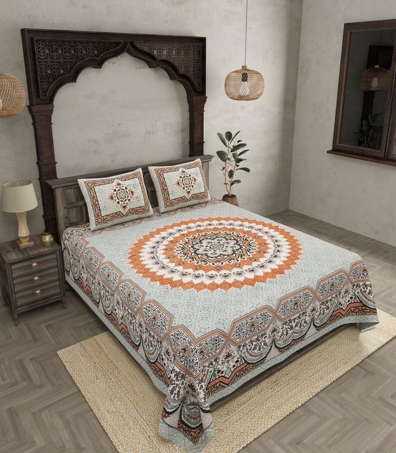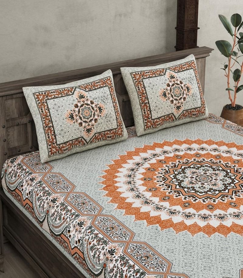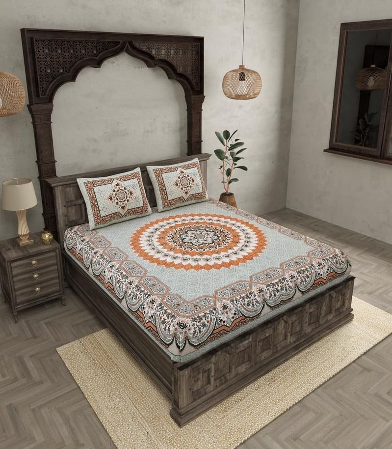 Turn your bedroom into a comfortable retreat with our Elegant 100% Cotton 240 TC Floral Double Bedsheet.Crafted from high-quality cotton, this bedsheet provides a soft and luxurious touch, ideal for a comfortable night's sleep.The classic floral design brings a touch of elegance and freshness to any bedroom setting.Pure Cotton Comfort: Our 100% cotton material is breathable and soft on the skin, offering maximum comfort.High Thread Count: Having 240 thread count, the bedsheet has a silky smooth feel and excellent durability.Charming Floral Design: The gorgeous floral print introduces a fresh breath of air into your living area, making it a great fit for all year round.Generous Size: With a size of 90" X 108", it is a perfect fit for double beds, giving full coverage.Complete Set: Comes with 2 matching pillow covers to give your bed an overall attractive look.Easy Care: Machine washable and resistant to fading, the bedsheet can be easily maintained.Ideal For: Adding bedroom beauty with an aura of elegance and charm.Gift-giving to loved ones on occasions such as weddings, anniversaries, or housewarmings. Designing a peaceful and welcoming ambiance in your bedroom.