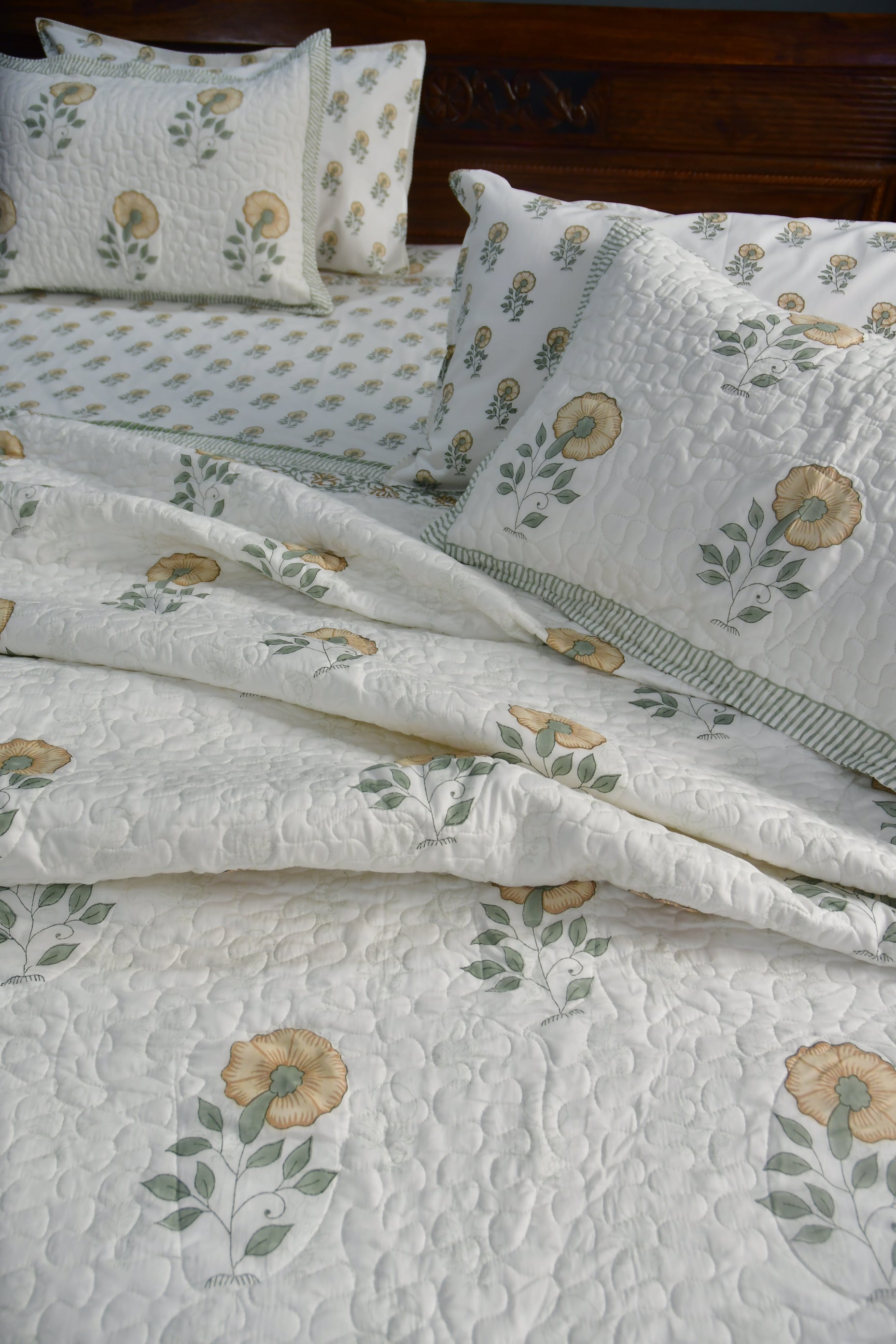 Flower of Hope Bedding set : Handblocked Single dohar (pair)+king size Bedsheet