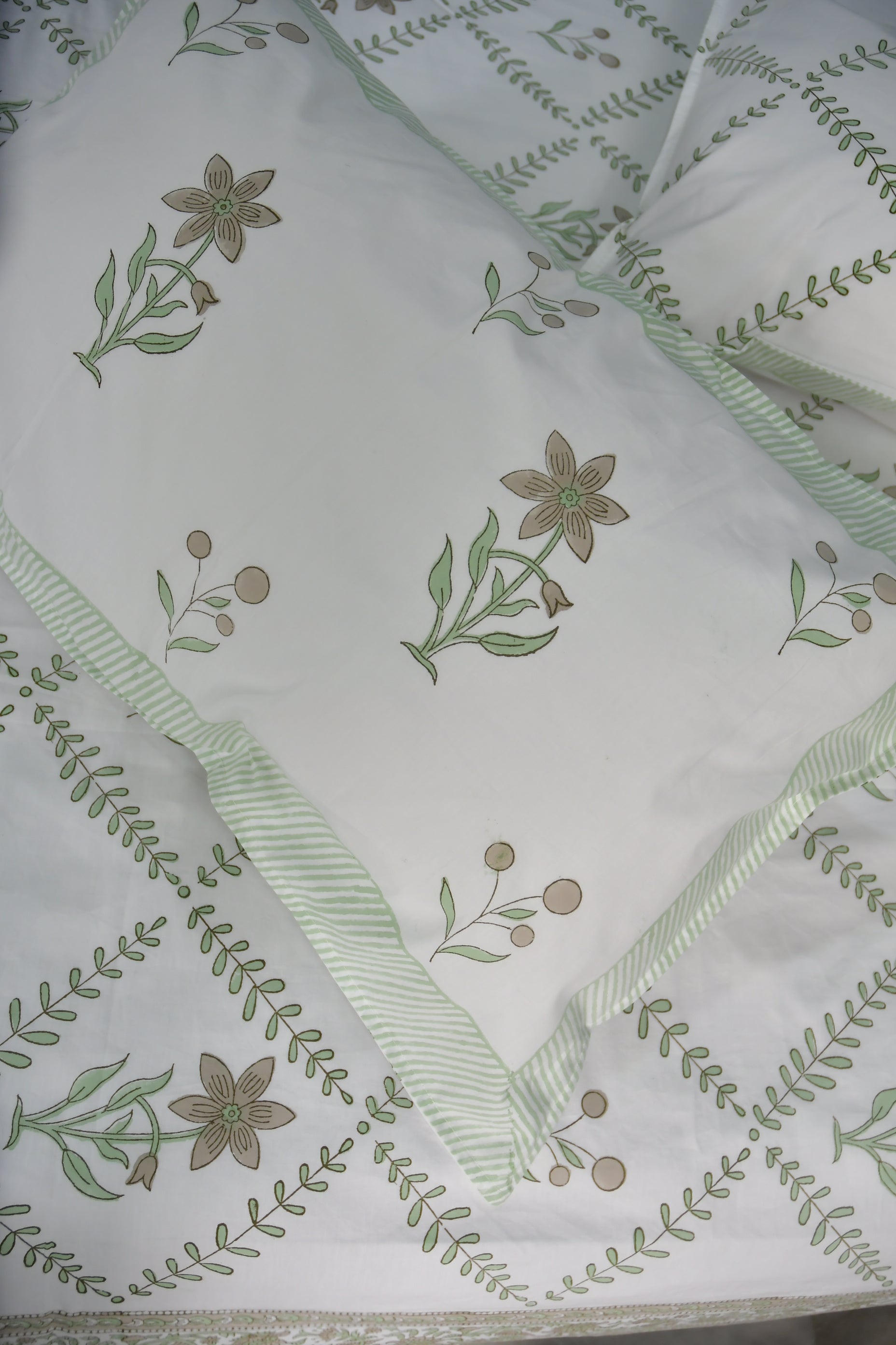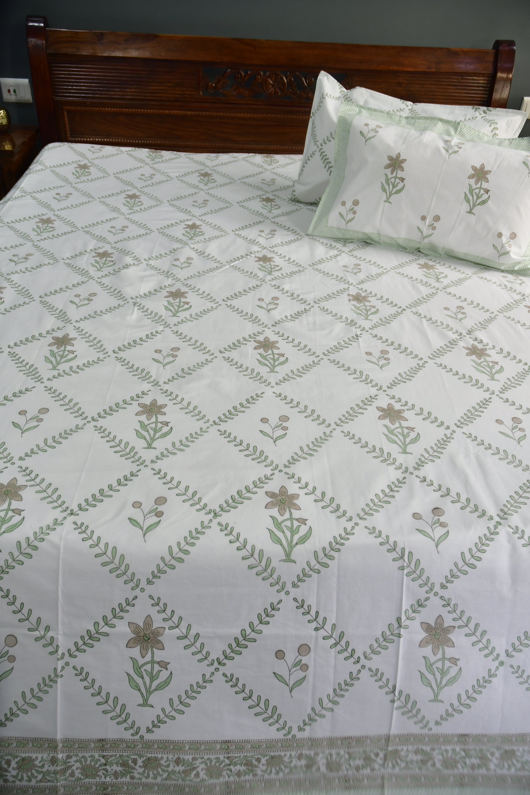 Green Jaal Hand Block Cotton Jaipuri Bedsheet - Super King (108 x 108) inches bedsheet