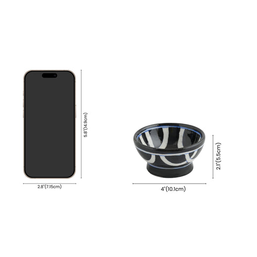 Handcrafted Black and White Round Blue Pottery BowlsSet of 2Geometric Pattern4