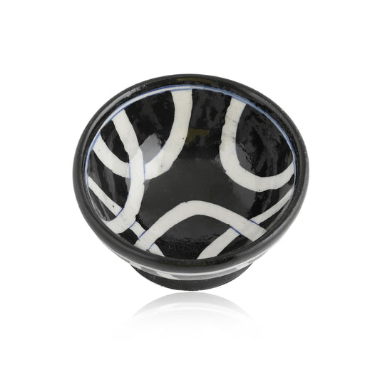 Black and whitea striking contrast, beautifully crafted. This handcrafted bowl set embodies the essence of Rajasthans Blue Pottery with a bold, contemporary edge. The graceful white patterns create a dynamic visual appeal, making these bowls perfect for both function and dcor. Elevate your home with a touch of modern heritage.Material - Blue Pottery - A blend of quartz powder, ground glass, saji, katira gond, and multani mitti.
