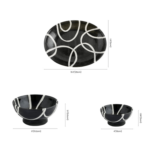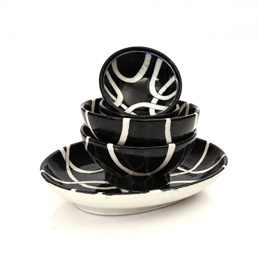 Handcrafted Black & White Blue Pottery Bowl & Plate Set Modern Jaipur Art
