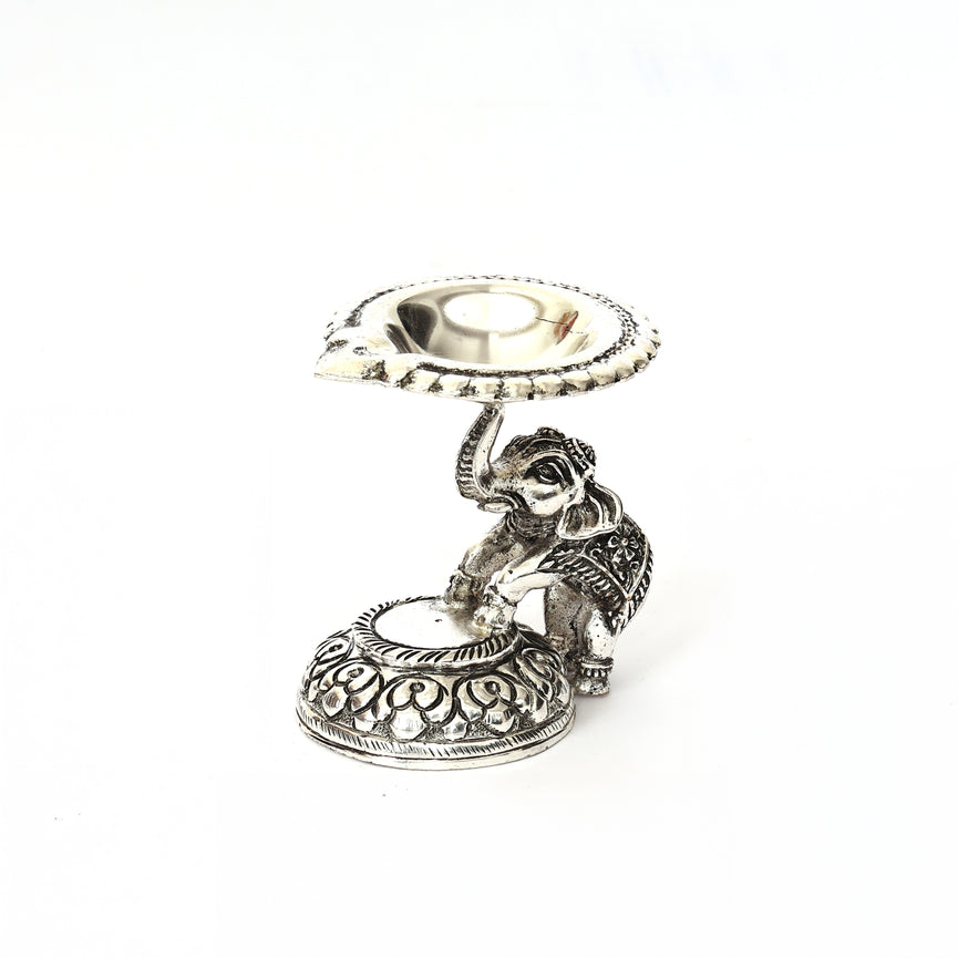 Handcrafted German Silver Elephant Diya - Traditional Indian Oil Lamp for Pooja & Home Decor