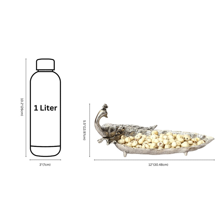 Handcrafted German Silver Peacock Snack Tray Indian Serving Dish