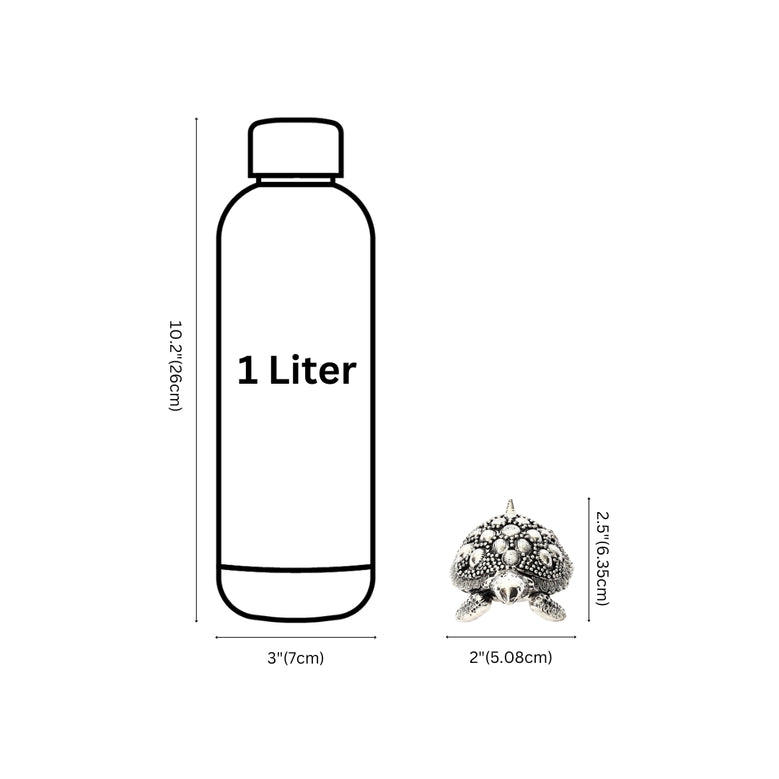 Elevate your space with the timeless elegance of this Handcrafted German Silver Turtle Decor, a stunning piece of Indian artistry. Measuring 2.5 inches tall, and 2 inches wide, this compact sculpture showcases a beautifully detailed turtle, symbolizing longevity and wisdom in Indian culture. The turtles shell is adorned with intricate circular patterns and textured designs, while its polished German silver body reflects light, creating a radiant, sophisticated glow. Crafted by skilled artisans, this piece features a glossy finish that enhances its visual appeal, making it a perfect addition to your home decor, pooja room, or as a thoughtful gift for special occasions. Durable and elegant, this German silver turtle sculpture blends traditional craftsmanship with modern aesthetics, adding a touch of cultural charm to any setting.Metal