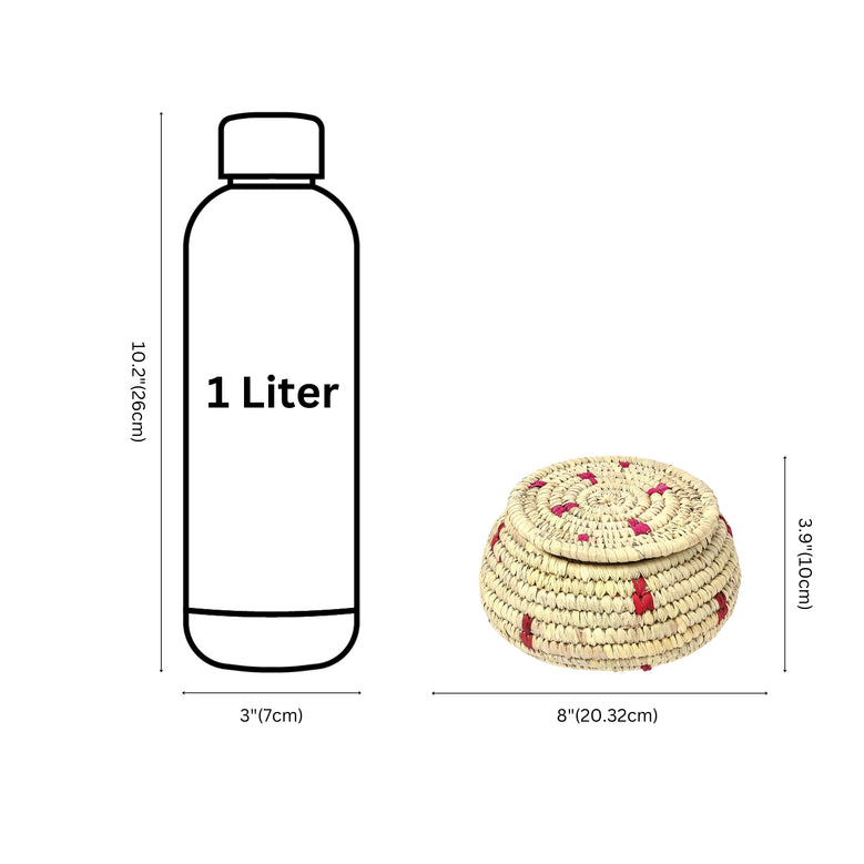 A beautifully handwoven Sabai Grass Multi-Storage Box in beige and pink colour is just what your home needs. It's an elegant way to keep things tidy without compromising style or elegance. It's ideal for storing trinkets, jewellery, or keepsakes. It's perfect for anyone who loves functionality and aesthetics with a rustic touch.Sabai grass, Date-Palm leaves, and Colourful threads.