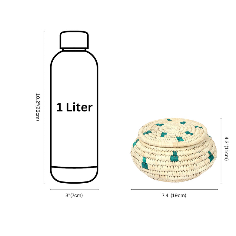 A beautifully handwoven Sabai Grass Multi-Storage Box in beige and teal colour is just what your home needs. It's an elegant way to keep things tidy without compromising style or elegance. It's ideal for storing trinkets, jewellery, or keepsakes. It's perfect for anyone who loves functionality and aesthetics with a rustic touch.Sabai grass, Date-Palm leaves, and Colourful threads.