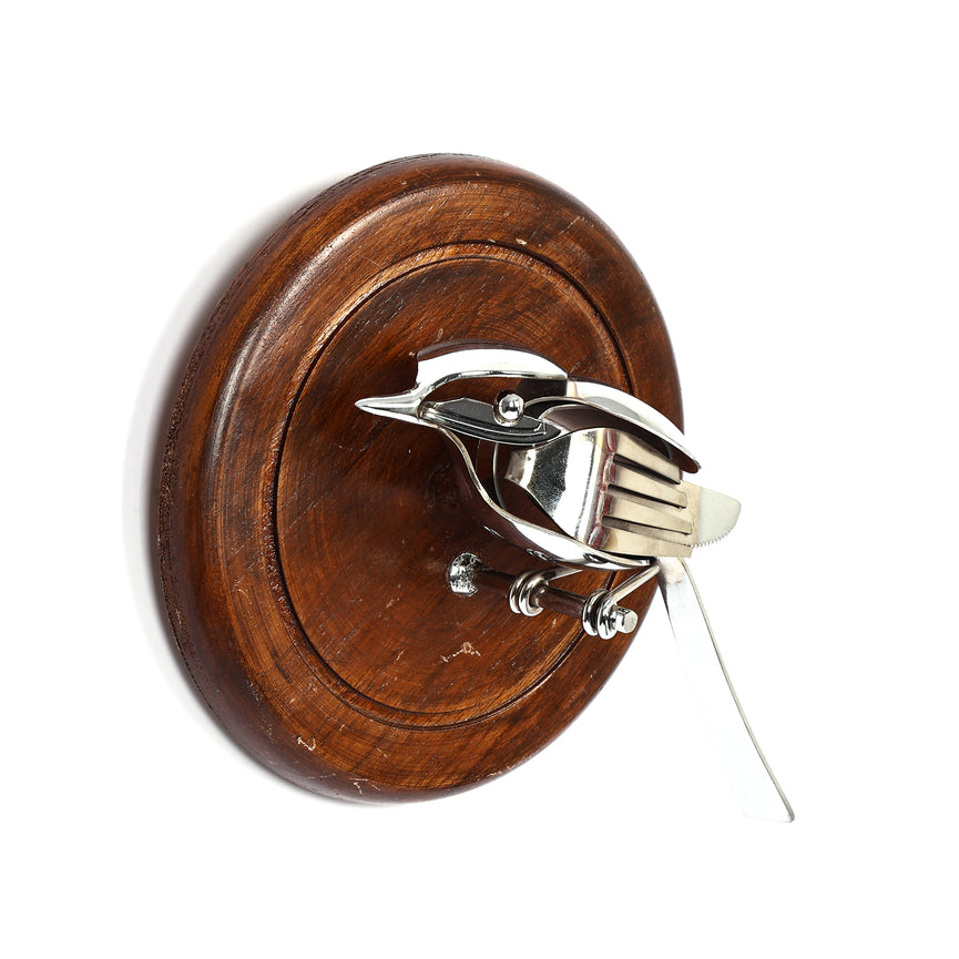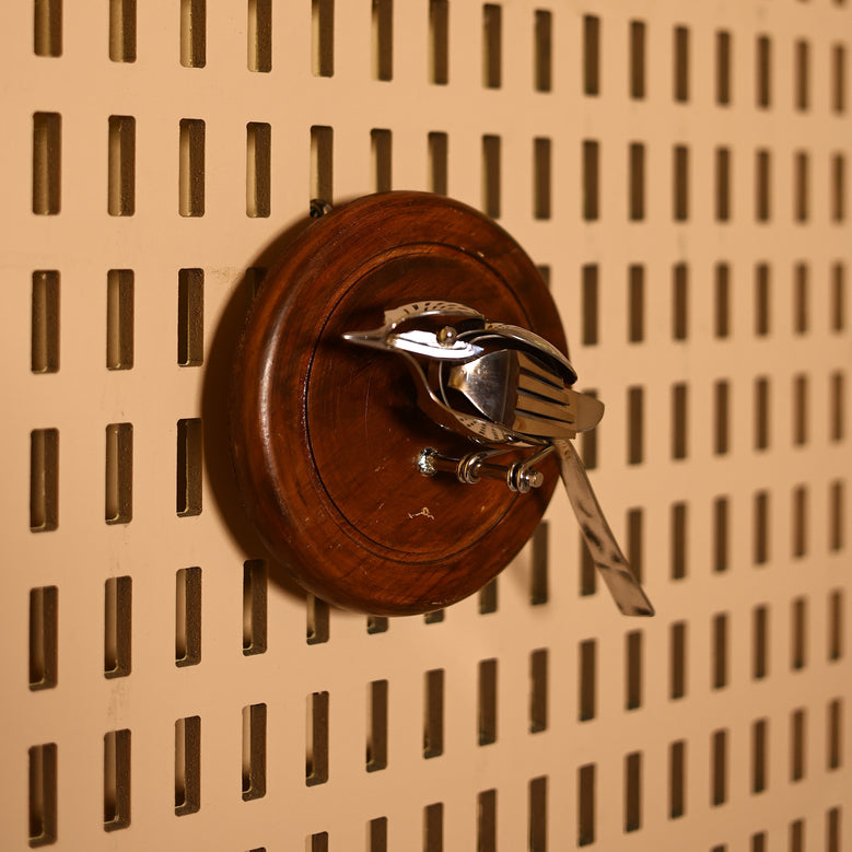 Rustic meets artistic in this handcrafted wall-mounted bird! Designed from repurposed cutlery and set against a wooden plaque, this sculpture is a stunning blend of craftsmanship and creativity. A perfect piece for adding a unique, handmade touch to your home dcor or gifting to an art lover.Steel