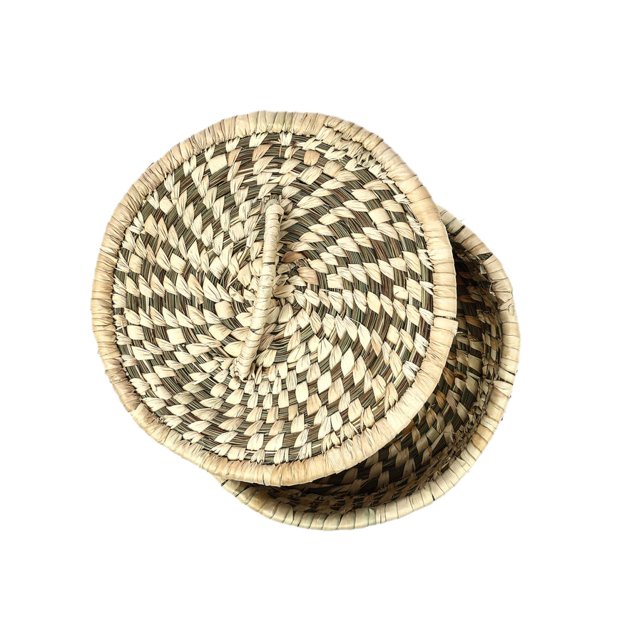Serve your chapatis with love in our beautifully crafted Sabai Grass Chapati Box. Carefully handwoven from date palm leaves, and sabai grass, it is designed to keep your chapatis soft and fresh while enhancing your dining space with its rustic charm. This perfect blend of tradition and modern elegance is a testament to our commitment to providing essential items for every home.Sabai grass, Date-Palm leaves, and Colourful threads.