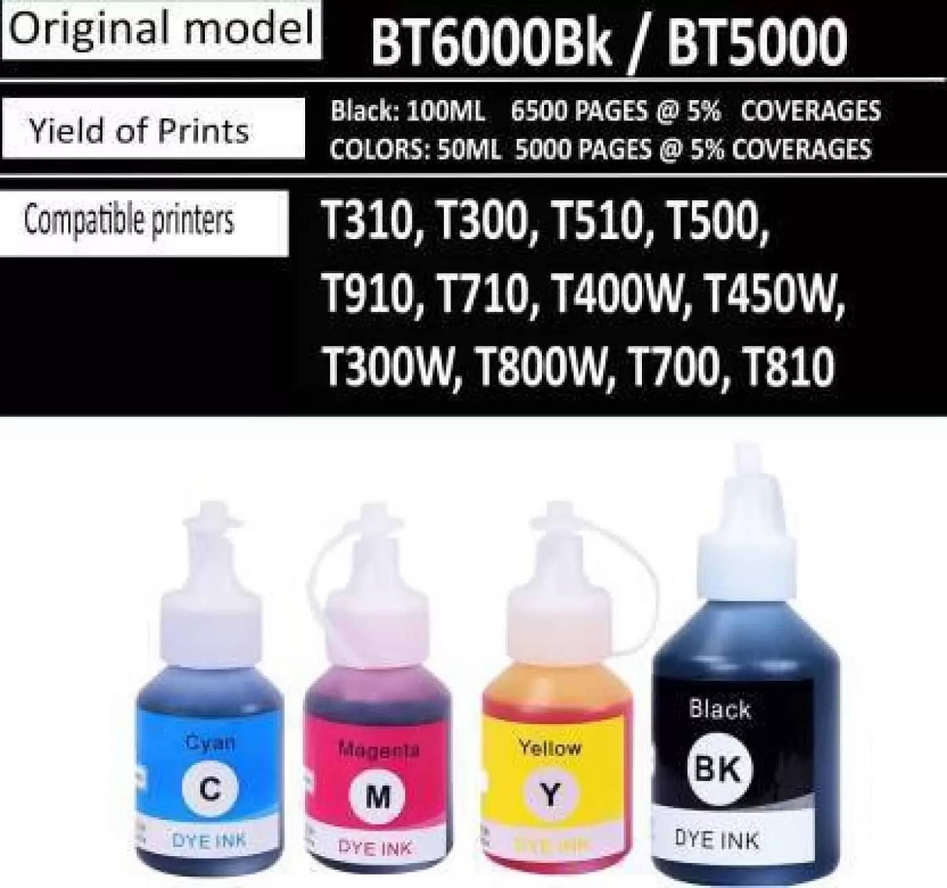 KALAR BROTHER BT5000 & BT60D BK Multicolor Pack of 4 Cartridge for Use with Brother DCP-T300,DCP-T500W,DCP-T700W,DCP-T800W inkjet printer