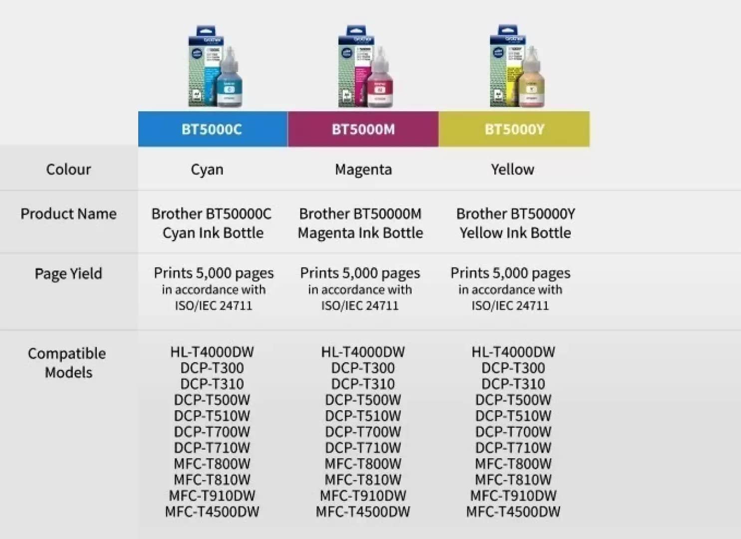 KALAR BT For DCP T220 Ink Multicolor Pack of 3 Cartridge for BT5000 Use printer DCP-T300, DCP-T500, DCP-T700W, MFC-T800W