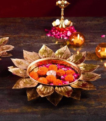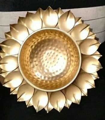 Kamal Leaf Urli 12 Inch Decorative BowlA Suggestion of Nature's Peacefulness in Your Residence! Taking inspiration from the serene beauty of the lotus leaf, the MVB Kamal Leaf Urli is a soothing, nature-themed elegance in your home. Made from fine metal with beautiful embossed motifs, this 12-inch decorative bowl reflects the aesthetic of a suspended lotus leaf and is thus an ideal centerpiece for any area. Design a Peaceful & Welcoming AtmosphereAdd water, colorful flower petals, and gentle flickering candles to the urli to turn your home into a serene sanctuary. Whether used in your living room, entrance, pooja room, or balcony, this intricately designed urli adds a touch of elegance and tradition to the surroundings.