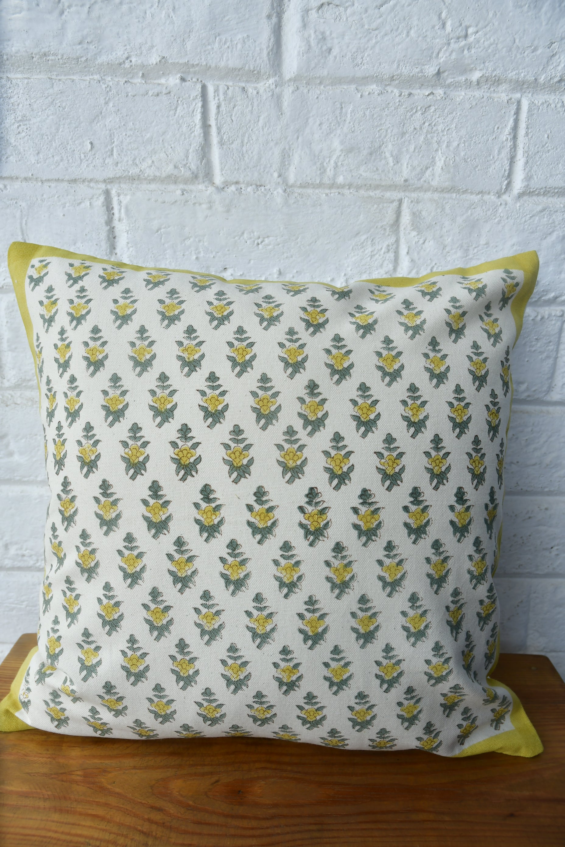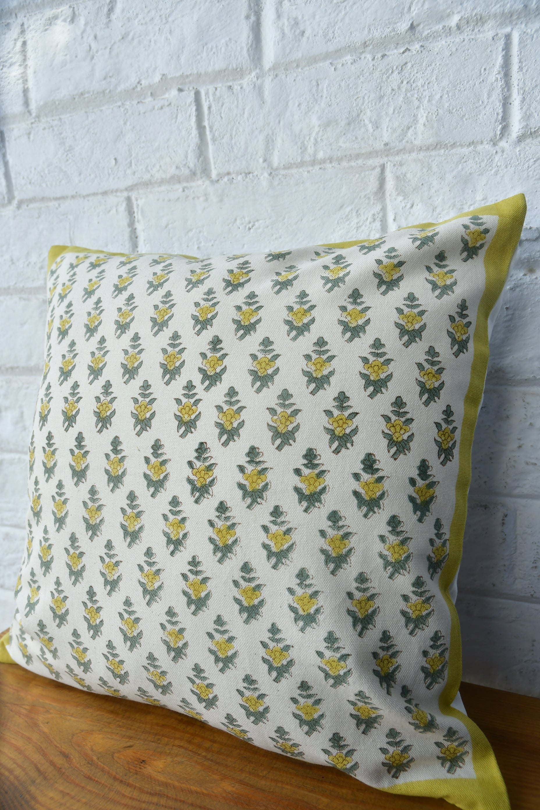 Lemon Green Buti Cushion Cover: Hand Block Printed Luxury India