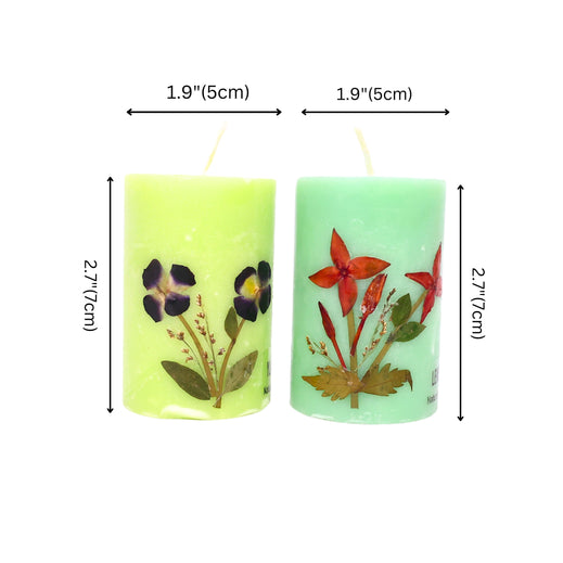 Invite a breath of fresh air into your home with this elegant duo of pillar candles, infused with the vibrant essence of lemongrass and ylang-ylang. Crafted from sustainable soy wax and adorned with natural dried flowers, their zesty fragrance awakens and revitalises every corner., Material - Soy Wax and Natural Dried Flowers