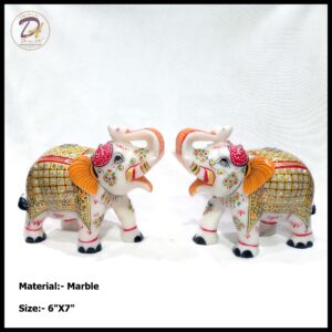 Marble Golden Elephant Pair Statue