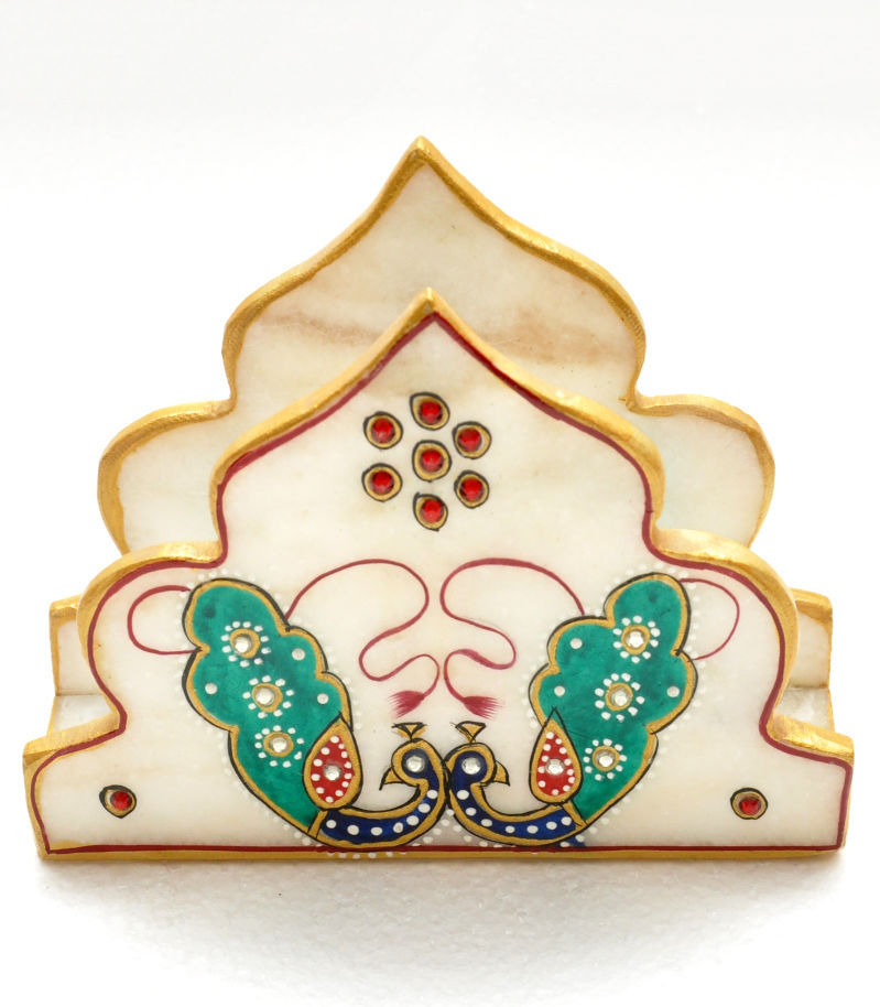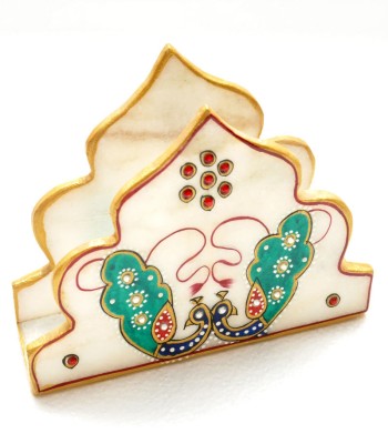 MVB Marble Mehrab Peacock Design Napkin Holder Set A Blend of Culture & BeautyAdd a touch of sophistication to your dining area with the MVB Marble Mehrab Peacock Design Napkin Holder Set, a breathtaking combination of form and artistic beauty. Made of rich-quality marble, this napkin holder is designed in the shape of Mehrab (arch), evoking the beauty of Islamic architectural style. Decorated with beautifully hand-painted peacock designs in hues of green and blue, complemented with gold accents, the piece injects a sense of luxury and cultural sophistication into any environment. Whether used on a day-to-day basis or for special occasions, it will add a touch of class to your table setting.