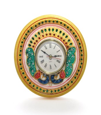 Marble Round Peacock Clock Ethnic Indian Home Decor