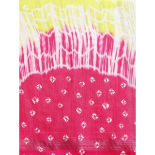 Meia Pink & Lime Green Linen Blend Printed Bandhani Saree