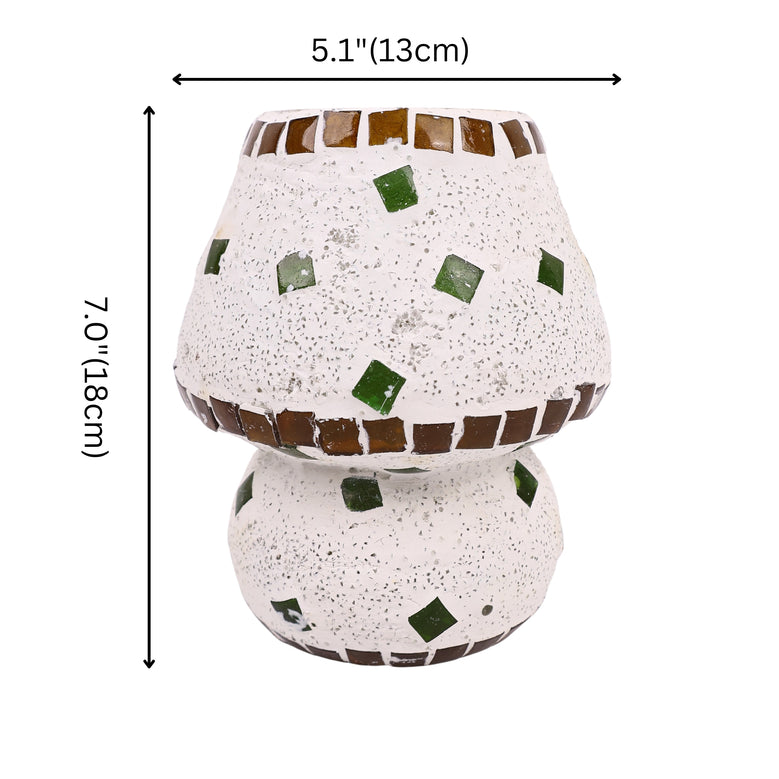 Experience the allure of artistry with this gorgeous Mosaic Electric Table Lamp. Crafted with intricate abstract patterns made from green and orange glass beads, it includes a wire and bulb holder for hassle-free setup. When lit, it creates stunning light effects, making it a focal point in any space.Glass