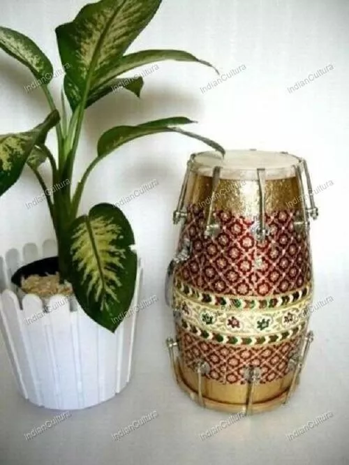 Musical Indian Handmade MeenaKari Work Folk Musical Instrument Wooden Dholak Nuts N Bolt Dholki